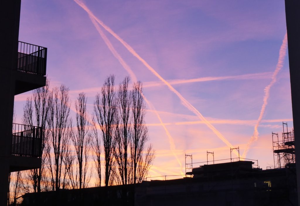 In Europa ist es ein vertrautes Bild: Kreuz und quer ziehen sich helle Bänder über den Abendhimmel, später liegen dünne Schleier in der Luft. Mal ergeben sie hübsche Muster, mal rötlich-gelb dräuende Menetekel am Horizont. Kondensstreifen von Flugzeugen sind im verkehrsreichen europäischen Luftraum allgegenwärtig und sie haben einen gewaltigen Effekt auf das Klima. Sie verursachen (abhängig von der zeitlichen Perspektive) zwei Drittel des gesamten Treibhauseffektes des Flugverkehrs.