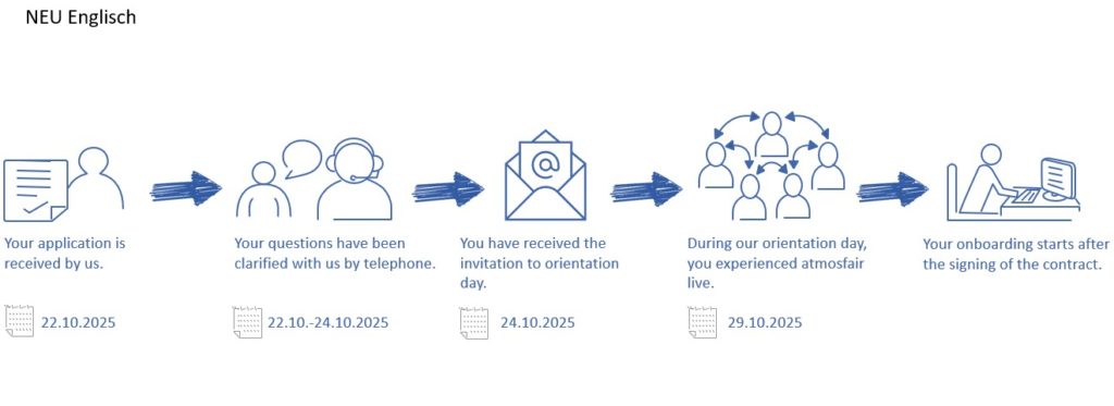 The best way to get to know our team and atmosfair’s work is to attend one of our orientation days. We will introduce you to our mission, individual colleagues and your tasks in detail. On this day, you can talk to everyone, see the office and learn everything that is important to you. We look forward to meeting you!